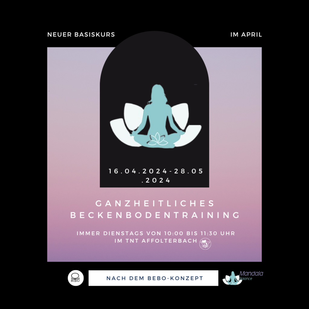 Der Start des neuen ganzheitlichen Beckenbodentraining-Kurses nach dem Bebo-Konzept ist der 16. April. Der Kurs geht bis zu dem 28. Mai 2024.